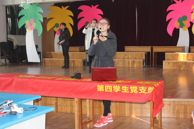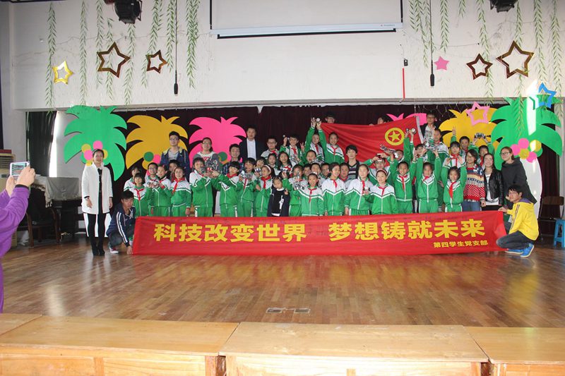 12月26日下午14:30分,allwincity万象城官方网站第四学生党支部在海口市新南国外国语学校景山分校举办了以“科技改变世界?梦想铸就未来”为主题的实践活动。出席此次活动的有allwincity万象城官方网站团委书记崔万春老师,第四学生党支部书记崔建兵老师,第四学生党支部科技梦想服务员15名成员,参加此次活动的有新南国外国语学校景山分校小学近60名师生。