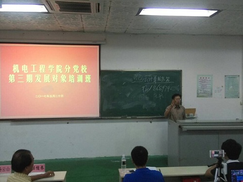 2017年5月20日15:3 0allwincity万象城官方网站分党校第三期发展对象培训班邀请程儒参、杨云山、林廷玖于1-T201讲授党课,报告由学工办主任、机械系第一学生党支部书记崔建兵主持。