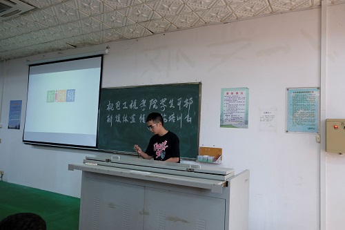 会议在热烈的掌声中拉开帷幕。林书源先行讲解,他结合自身在校组织掌握的丰富的新闻稿写作及媒体实习经历,分别以日常活动、大型活动和会议讲座三大类新闻为范例进行讲解,并介绍了新闻写作、活动拍照中的一些注意事项。