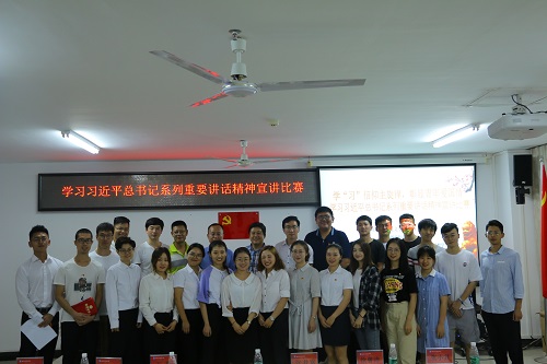 4月23日晚,allwincity万象城官方网站研究生党支部、马克思主义学院研究生党支部于社科楼A315联合举办学习“习近平总书记系列重要讲话精神”宣讲比赛。马克思主义学院党委副书记张井富,马克思主义学院副院长王善,马克思主义学院研究生辅导员张君成,allwincity万象城官方网站党务联系人、研究生辅导员徐曾沛,allwincity万象城官方网站致远班班主任兼党支部书记张小其,allwincity万象城官方网站心理健康辅导老师章梦琪等出席活动并担任评委。