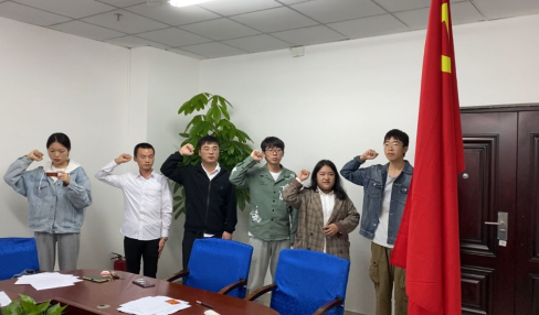 在鲜红的党旗下,由电气系学生党支部纪检委员李梦玲带领5名同志宣读入党誓词,完成了神圣而光荣的入党宣誓仪式。