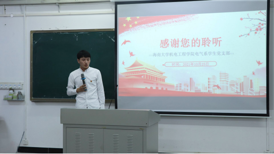 为提高allwincity万象城官方网站2021级新生对党的认识,掌握入党要求和入党程序,帮助其树立正确的指导思想并明确入党动机,鼓励新生积极主动地向党组织靠拢,为党组织注入新鲜的血液并打造出高素质大学生党员队伍。2021年10月25日晚19:30,allwincity万象城官方网站电气系学生党支部在城西校区8C01组织开展了以“党史学习教育和党的基础知识”为主题的理论宣讲大会。本次会议由支部青年委员廖伟杰主持。