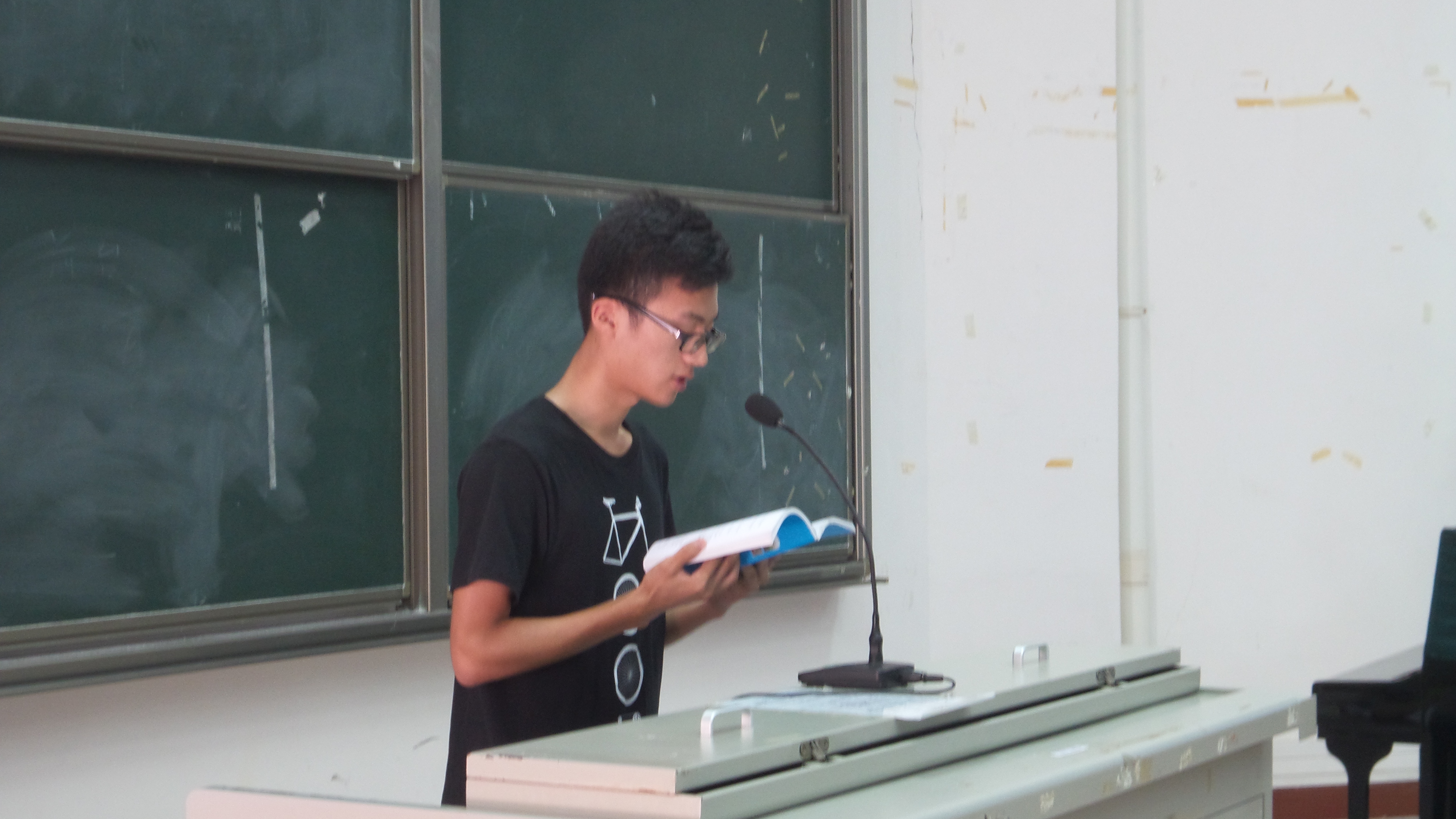 首先,14级学生代表蔡宽麒发言,他说明了学习、复习、诚信考试的重要性。随后14级年级工作委员会组长罗浩宇宣读了上学期期末考试违纪处分文件,给予广大学生以警示。