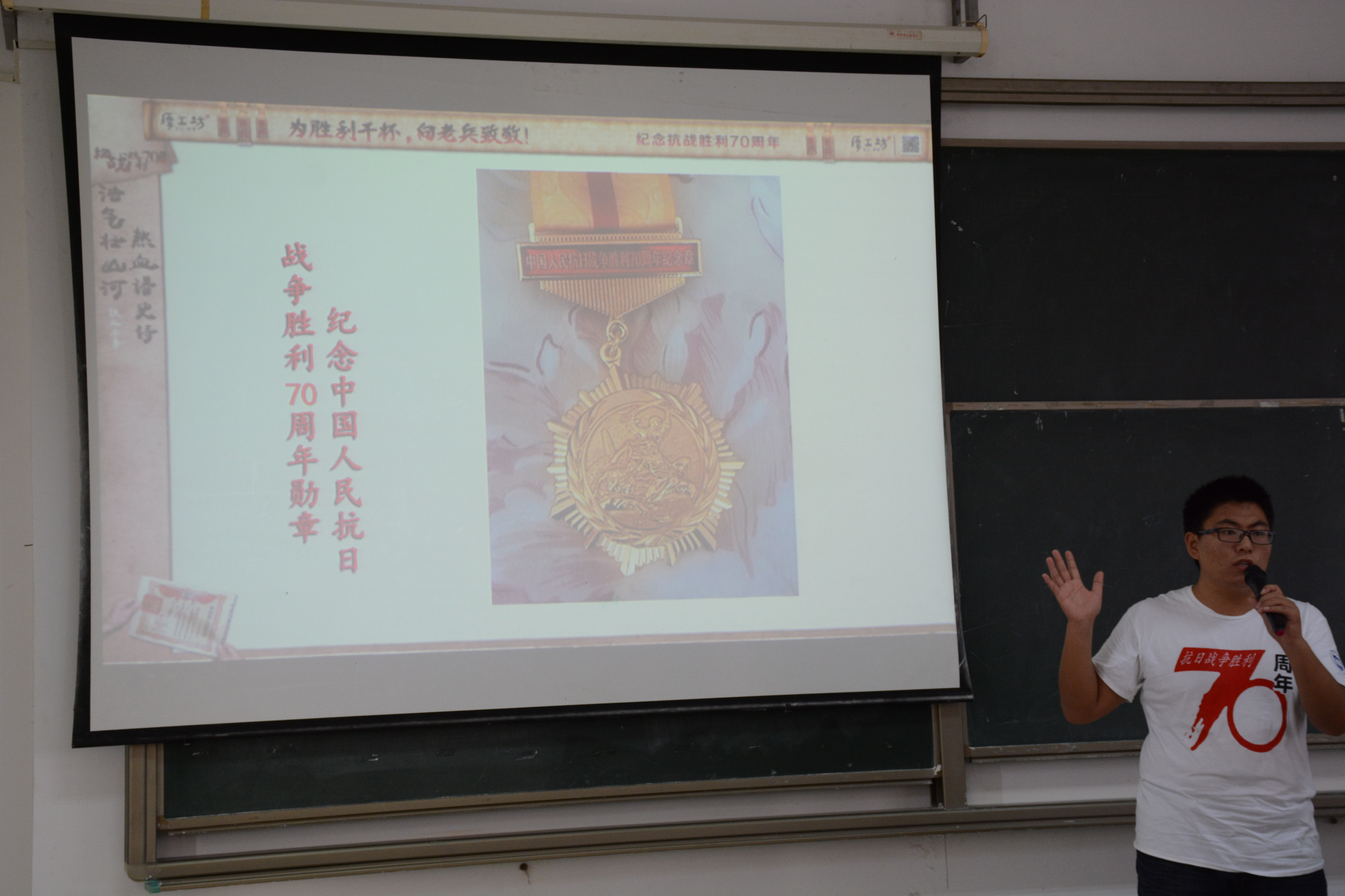 活动开始后,致远传承寻访团指导老师崔建兵讲述了全国大学生纪念抗日战争胜利70周年寻访活动的内容与意义,希望通过致远传承团队的分享,引导更多青年大学生主动、自觉地在社会实践中学习“历史课”,缅怀抗战先烈,传承革命精神。随后,团队成员一一上台与大家分享自己的寻访心得以及感悟,他们用朴实真切的言语赢得了在场同学的一次次掌声,他们的体会引起了在场同学的共鸣。接着在互动环节中,在场同学踊跃发言,积极与团队成员交流,希望以后有机会也能参加这样有意义的社会实践活动。宣讲结束后,团队成员邀请在场观众观看《抗战老兵寄语》及由海南新闻频道跟踪拍摄的视频《不能忘却的记忆》为大家展现了寻访过程中的点点滴滴,给在场观众留下了深刻的印象,也使在场同学深刻体会了抗战的艰辛与不易,懂得珍惜眼前的幸福生活。