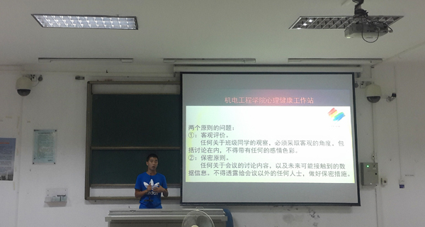 10月16日晚,万象城官网心理工作站于3教110召开2016-2017学年首次见面会暨心理委员培训会。心理辅导员余梦月老师、工作站新老成员共计40人参加本次大会,会议由闪黎军主持。