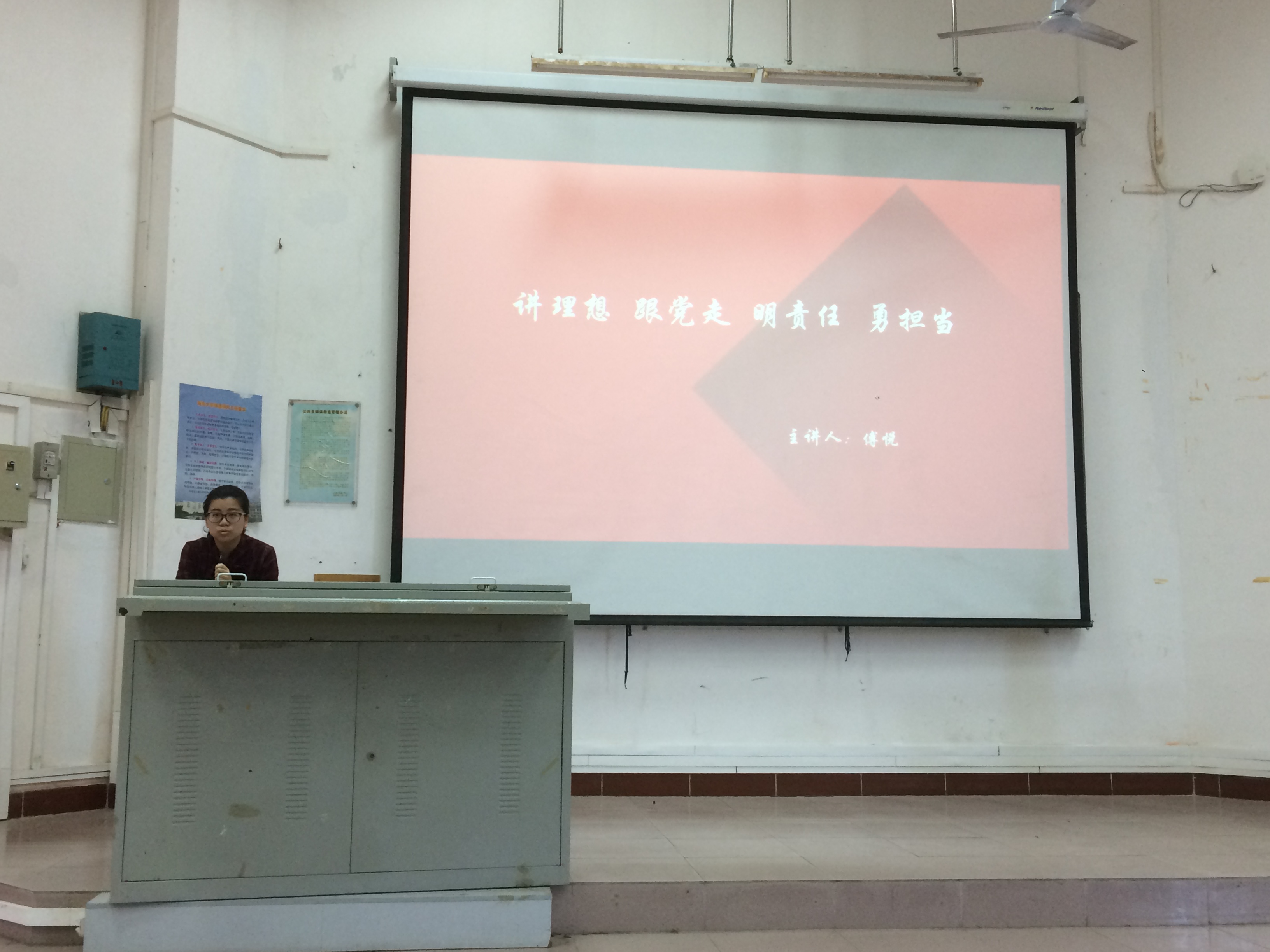 傅悦老师就“讲理想跟党走,明责任勇担当”这一主题向大家讲述了时代赋予青年人的责任与担当。傅老师表示,每一个时代都有其过程与经历,我们要在成长中做出选择,在时代中展现自己的价值。