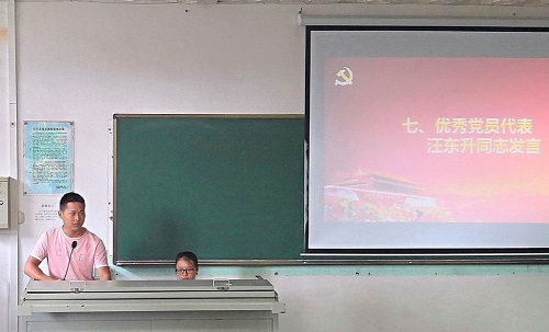 学院优秀党员代表汪东升同志随后进行了发言。他首先提出两个时间点,分别是来年的中华人民共和国成立70周年与三年后的中国共产党成立100周年。他指出,中国共产党是目前世界上最壮大,历史最悠久的政党,足以证明中国共产党是人民靠得住的组织。他希望各位党员要努力成为国家需要的人,成为时代的党员,要加强党性修养,加强政治觉悟,严于律己,若原地踏步甚至退步,则与自己所憎恨的人群并无差别。谈起学院党建工作,他充分肯定了联席会的职能,并希望各支部支委与联席会能够加强彼此之间的沟通与交流,共同为学院的党建工作而努力。