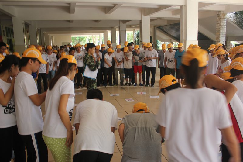 为了能够让本次拓展活动更加专业化,万象城官网特地从校外请来专业的教练员石俊对全体学生干部展开素质拓展训练。石教练慷慨激昂的开场白感染了每一位学生干部,让大家深深感受到自己做的远远不够,教练最后以一句“完美团队,海大机电!”点燃了每个人的激情,一天的活动拉开了序幕。在教练分好组后,同学们开始了自己的队伍建造,包括队长、队秘、队名、队歌、队旗、队训的确立和展示,同学们的创新思维与团结协作的精神在第一环节就展露无遗。接下来的训练中,队长带领着各队队员完成了“解手结”、“坐膝盖”、“排数字”、“齐眉棍”、“驿站传书”、“高空飞蛋”等一系列训练活动。在整个培训过程中,每一位学生干部都积极的配合,绞尽脑汁地想办法为自己的团队加分,游戏增添了团队成员的友谊并加强了团队的凝聚力。