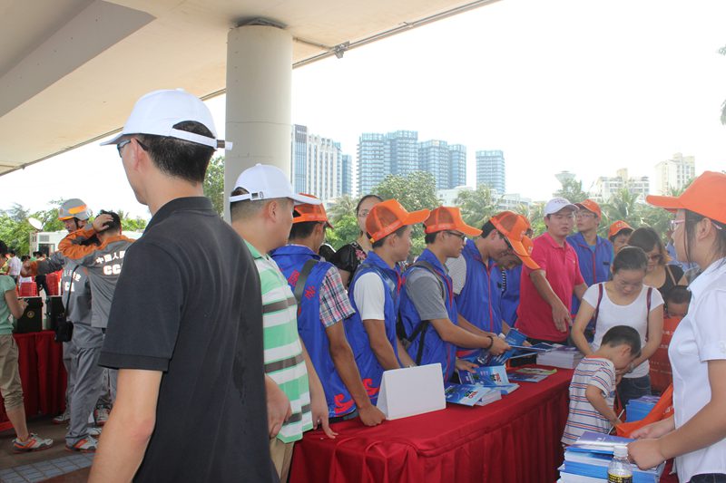 2014年5月12日,第六个国家防震减灾日。为更好的帮助海口市民了解防震减灾科普知识,增强人们防震减灾意识,allwincity万象城官方网站80多名青年志愿者在海口市民防办的支持下,联合市园林管理局、海口广播电视台在海口世纪广场开展了以“幸福海口、民防护航”为主题的民防知识公益宣传活动。