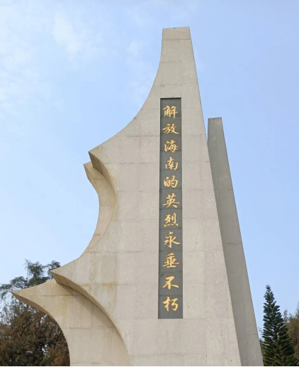 活动现场,同学们看到了“解放海南的英烈永垂不朽”字样的高大石碑,带队人员对烈士陵园的相关历史进行了介绍。