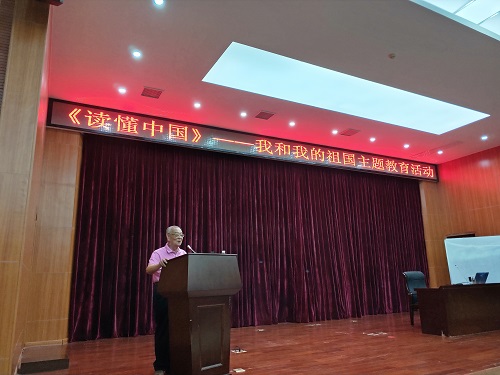活动开始程儒参教授作《我和我的祖国》专题报告。程教授认为,要正确读懂中国,就要把握三个重要时代的特点与意义:毛泽东时代,让中国人民站起来;邓小平时代,让中国富足起来;习近平新时代,让中国强大起来。他满怀激情地讲述了他对于三个时期的感受理解,让同学们进一步理解了“没有共产党就没有新中国”这句话的深刻含义,正是有了中国共产党的领导,才有了今天幸福得生活。程老表示会一直关心教育事业心系下一代,为一代又一代青年学生毕生精力,并感谢教育厅、学校和组织对自己的厚爱。
