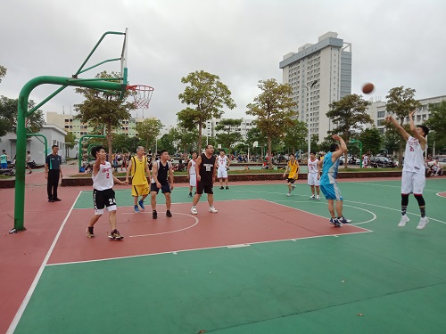 比赛阵营分为教工队与2016级电气专业。队伴随着哨声,比赛正式开始,双方队员都放慢了节奏,随着比赛气氛渐趋火热,2016电气的队员们率先展开了攻势,投进了比赛的第一个三分球,全场欢呼。与此同时老师们也不甘示弱,以迅雷不及掩耳之势投进了一个三分球,此后,双方便你追我赶,以激烈形势结束了上半场的比拼。