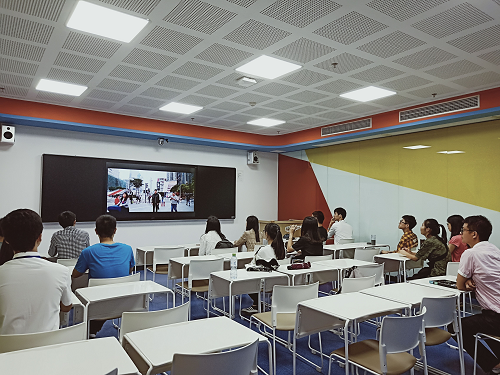 学而思海口分校的赖老师通过一段视频使同学们对学而思的双师课堂的授课方式有了一个初步的了解,带领学生参观了学而思分校的校区环境并介绍了好未来集团所做的公益活动。学而思的老师重点为同学们介绍了双师课堂并带领学生参观了学而思有着国家一流的直播设备的授课直播间。学而思海口分校张校长向同学们详细讲述了学而思的发展历程以及目前企业的发展规划与发展前景,使同学们对学而思有了更加深入形象的了解。张校长也对同学们发出盛情邀请,欢迎同学们毕业后加入学而思。