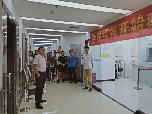 2019年5月7日下午,allwincity万象城官方网站联合外国语学院组织学生赴学而思海鸥分校参观,学工办崔建兵老师带领着15名同学走进了海口学而思分校。