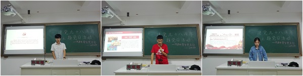 会上,汽车系学生党支部党员彭纳武同志为大家讲解了中国共产党这九十八年来的发展历程以及重大转折。他讲述中国共产党建党、立党的光荣历史,使同学们对中国共产党的光荣历史有了更深刻的了解,更加坚定了同学们今后树立艰苦奋斗精神的决心。汽车系学生党支部党员徐世钰同志为大家讲解中国共产党建党以来的历次重大会议。他从中共一大开始讲起,一直到中共十九大,向大家讲述了中国共产党建党以来的巨大变化。他感叹到,中国共产党由最开始的几十名党员,发展到现在的拥有九千万名党员的大团体,属实体现了中国共产党的先进性和优越性。汽车系学生党支部党员朱亚娟同志为大家讲解党章党纪,她从《中国共产党党员教育管理工作条例》出发,结合上级要求,向大家讲解了身为一名合格的党员应当履行的责任与义务。党员工作条例、党员教育基本任务、党员日常管理方式等一系列管理条例熟记于在场每一位同志的心中。