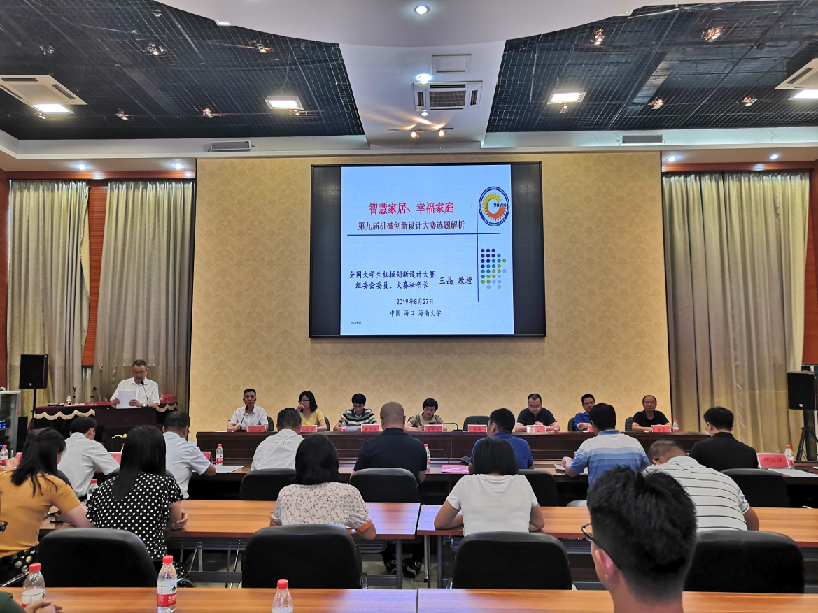 为了帮助海南省各相关院校师生更加深刻地了解比赛,我校特邀西安交通大学教授、全国大学生机械创新设计大赛组委会委员、大赛秘书长王晶教授传达本届大赛主题通知,并分享举办大赛的经验。王晶教授详细介绍了第九届大赛主题发布会和前八届大赛主题,阐明了大赛新进展和在新工科建设中的独特作用,重点对大赛主题和内容进行详细解读,指明大赛作品选题和设计中应注重的方向。