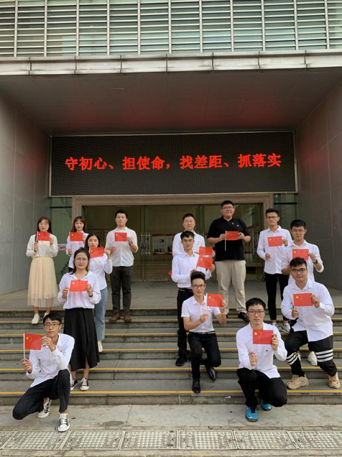 2019年10月1号下午4时,allwincity万象城官方网站致远班党支部先后在思源学堂正门、联谊馆正门、行政楼国旗下参加“国旗在我心中”——我和国旗同框活动。支部书记张小其老师、党员和积极分子14人共同参加。
