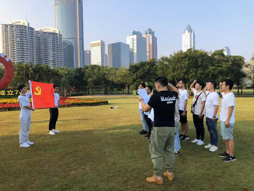 清晨7点,在支部书记黎航同志,副书记赵乐然同志的带领下,研究生党支部的同志们汇聚于万绿园,伴随着清晨的阳光,对着国旗宣誓,并于国旗一同合影留念。