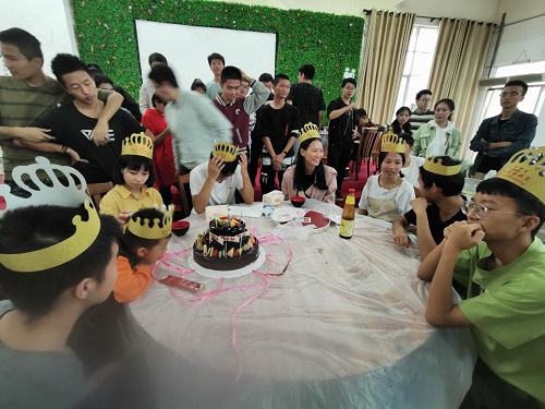 在包饺子活动结束后,大家为十二月份过生日的班委庆生,年级委员会特意准备了一个大蛋糕,为他们歌唱生日歌,歌声美妙,祝福美好。
