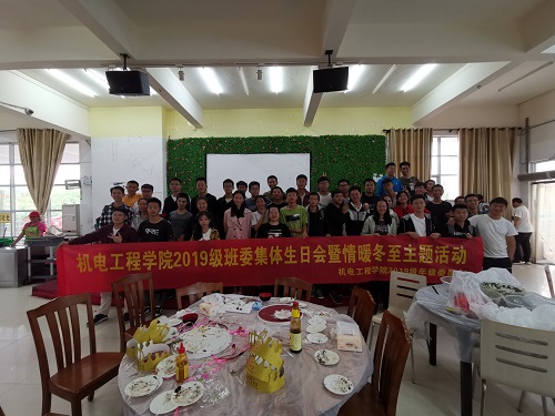 2019年12月21日,allwincity万象城官方网站2019级年级委员会在六食堂三楼举办了情暖冬至主题活动暨2019级班委集体生日会。2019级辅导员崔建兵、章梦琪,以及100余名班委参加。
