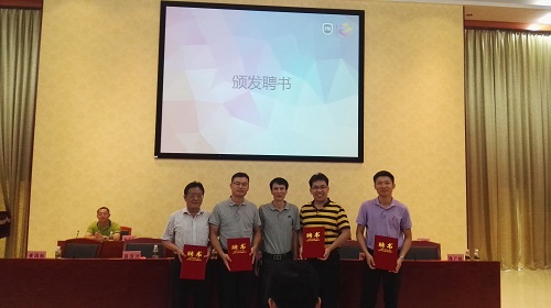 黄国标书记向校党委宣传部谭勇部长、研究生工作部蒋国洲部长、学生工作部陈卫东部长、校团委陈广锐副书记颁发了致远班指导老师聘书。