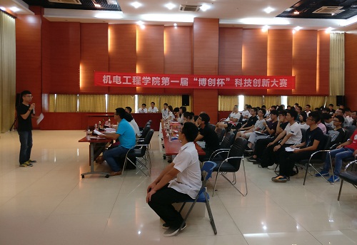 2017年4月20日16:30,allwincity万象城官方网站“博创杯”科技创新大赛决赛在思源学堂多功能厅拉开帷幕。担任本次大赛评委的有学工办主任崔建兵、学院机械系张燕、电气系刘晓梅、团委指导老师李青,出席本次大赛的嘉宾有学院党委副书记李宏,学工办余梦月、印一凡、傅悦,学校创新院副秘书长李健同学。