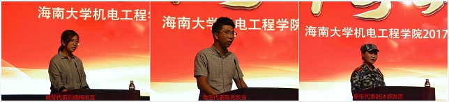教师代表电气系刘晓梅博士分别从热爱、追求、努力、感恩四大关键词对2017级新同学提出真切教导。老生代表机械系陈尧同学在会上发言,通过讲述自身经历,表达了对新生青出于蓝而胜于蓝的期待。新生代表机械大类赵冰清同学表达了作为新生对大学生活的憧憬和期望,表示大学不是成功的终点,而是起点,在大学阶段也不能放松对自己的要求,要继续努力学习,展现2017级新生的朝气和才气。