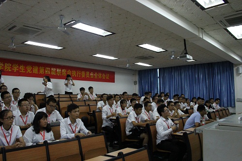 会议在庄重嘹亮的国歌声中拉开帷幕。学院党委书记黄国标为大会致辞,他充分肯定了学院学生党支部和党员的工作、学习和生活表现,并对学院的学生党建工作提出新的要求。他表示,大学生党员是实现中华民族伟大复兴的中国梦的主要推动者和实践者,我们要落实全面从严治党的要求,深入贯彻落实以习近平同志为核心的党中央的决策部署,规范建设支部、发挥党员模范作用、创新联席会党建模式,不忘初心,砥砺前行,以昂扬的姿态迎接党的十九大胜利召开。