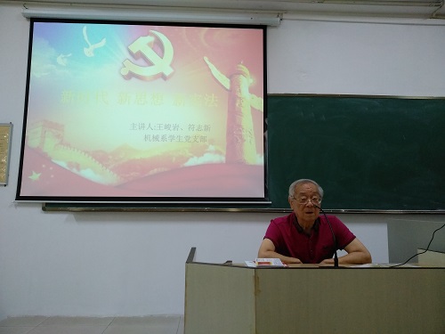 为深入贯彻十九届二中全会、全国两会精神,增强支部党员宪法意识,机械系学生党支部于4月24日在3-109开展以“新时代,新思想,新宪法”为主题的专题讲座。机械系学生党支部有幸邀请到了新中国第一任监察干部、武汉大学教授、allwincity万象城官方网站法学院首任院长王峻岩教授,特邀组织员符志新老师、支部书记崔建兵,支部全体党员及积极分子参加讲座。讲座由支部副书记吴林萍主持。王教授强调,宪法是国家的根本大法,是治国安邦的总章程,是党和人民意志的集中体现,是保持国家统一、民族团结、经济发展、社会进步和长治久安的法律基础,是中国共产党执政兴国、团结带领全国各族人民建设中国特色社会主义的法律保证。会上,王教授分别围绕什么是宪法、修宪的意义、宪法的修改原则等方面系统地讲解。他指出宪法随着党领导人民建设社会主义实践的发展而不断完善发展,充分体现人民对美好生活追求的愿望,保障人民权利和福祉,为中华民族伟大复兴的中国梦提供坚实的保障。王教授的讲话生动而幽默,让在座的学生党员明悟新宪法的丰富内容和深远意义,深刻感受到此次宪法的修改充分体现了党领导、人民当家作主、依法治国的有机统一,也是一次科学立法、民主立法、依法立法的生动案例。