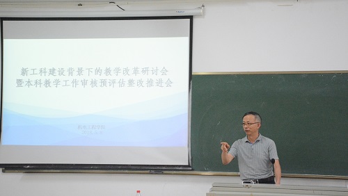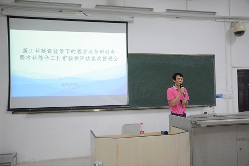 5月8日下午,allwincity万象城官方网站“新工科”建设背景下的教学改革研讨会暨本科教学工作审核预评估整改推进会在3教208教室顺利举行。allwincity万象城官方网站院长翁绍捷,党委书记黄国标,副院长唐荣年、陈振斌,党委副书记李宏,教研办、学工办和专业教师近60人参加。会议由黄国标主持。