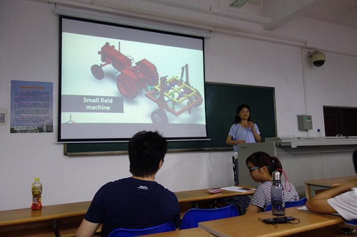 两位教授先后为2015级农机、2017级农机、2015级机电、2015级机械等本科专业学生讲授专业知识。结合国外农业情况,重点讲授土壤耕作机械、保护性耕作技术和国外大型农业机具设计与开发等。通过大量图片和案例教学,使同学们认识到保护性耕作技术的丰富形式以及目前国外保护性耕作的发展现状、国外土壤深松作业的发展方向和国外农业机具发展现状等。结合曼尼托巴大学机械土壤动力学实验室和加拿大大学本科教学模式,两位详细讲述了加拿大保护性耕作技术及其土壤深松技术的主要模式,图文并茂的形式让同学们了解了加拿大机械土壤动力学实验室的基本情况,通过与学生们互动的形式使学生们了解了土壤机械相互运动原理,并重点介绍了加拿大高校本科、硕士、博士培养模式,以亲身经历讲授了如何成为一名合格的国际留学生。