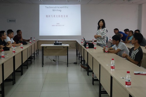 为加强万象城官网青年教师和研究生的英文科技论文写作能力,陈瑛教授作了《如何写英文科技论文》的专题讲座。陈瑛教授首先介绍了英文科技论文的构成。随后,陈教授详细地介绍了英文科技论文每个部分独特的比例分配、具体写作手法以及图表注释等问题,并且在每个部分都以具体论文为例,详细全面地描述了规范的英文科技论文的具体写作形式,图文并茂的形式让老师和同学们了解了在英文科技论文比例分配和图表注释的重要性。授课期间,陈教授深入浅出地讲述了有关自己写作英文科技论文的写作的具体实例,给老师和同学们带来写作上的共鸣与启迪。此外,陈教授鼓励老师和同学们有问题积极提问,并耐心地解答问题,精彩的讲课赢得了老师和同学们热烈的掌声。