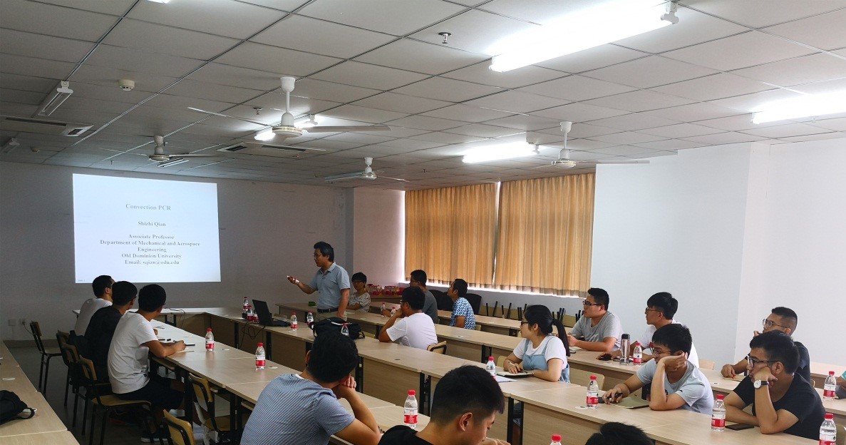 2018年6月20日-26日,美国欧道明大学航空机械学院Shi Zhi Qian教授,应邀来万象城官网进行为期一周的授课。结合我校本科及研究生教学要求,ShiZhi Qian教授为万象城官网学生讲解了“PCR”、“颗粒追踪”、“颗粒运动”“微纳尺度电动力学”等相关专业知识,并介绍了美国欧道明大学的相关情况以及国外留学申请资助等相关事宜。同时,为促进学院青年和研究生英文科技论文撰写,ShiZhi Qian