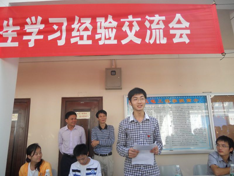 黄国标副书记在致辞中希望新生们能向到场的优秀师兄师姐们汲取宝贵的学习经验,能够把当前自身存在的问题与困惑向师兄师姐们请教,让大家对大学的学习有所感悟进而明确方向。随后,优秀学生代表07电气1班学生袁焦(已被报送至电子科技大学)发言,他以自身成功的保研经验来告诫新生要学会学习,并就大学学习特点、制定合理的学习规划等方面与同学们分享了很多自己的经验与方法。在互动交流环节,同学们积极踊跃,就课堂上如何汲取知识,学习与学生工作应如何平衡,今后的考研方向等方面问题向师兄师姐们请教。师兄师姐们也耐心地为同学们一一解答,并特别强调了此类问题发生时应采取的应对方法。