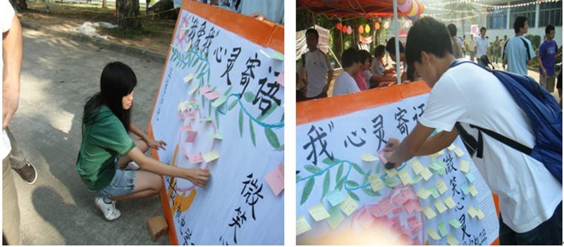 同学们正在贴下自己的“心灵祝福语”