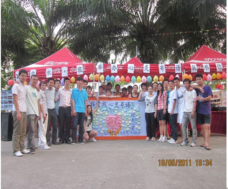 活动从下午4:30持续到6:30,期间播放了大学生心理健康教育的广播,宣传了心理健康的重要性及必要性。来往的同学也积极响应,写下自己对美好生活的寄语,并在“温馨阳光,微笑心灵”的活动主题的横幅上签下自己的名字,以实际行动表明了热爱生命,积极乐观的生活态度,以及对美好青春的祝福。最后,机电学院辅导员崔建兵老师和班主任林茂老师也来到我们的活动现场为我们写下祝福语,并在活动结束后与我们所有工作人员合影留念!