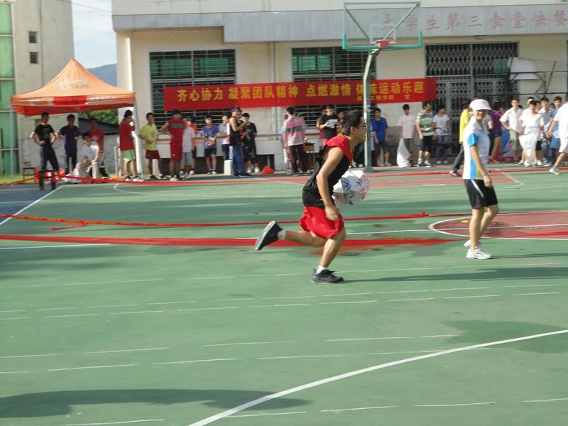 当日上午进行了袋鼠跳、集体跳绳和部队踩砖过河三项比赛,下午进行了运球接力、十人投篮和齐心协力三项趣味比赛。由于比赛项目的趣味性、团体性比较强,赛场气氛热烈火爆,趣味盎然,高潮不断。比赛现场,运动员滑稽的表情、搞笑的动作,让观众们乐开了怀。赛场内始终洋溢着参赛者团结拼搏、奋力夺魁的体育精神;赛场外一浪高过一浪的欢呼声,不少参赛选手和观众认为趣味体育运动锻炼的是体力,激活的是生命,收获的是笑脸,充分展示了万象城官网学生健康向上、充满活力的精神风貌。