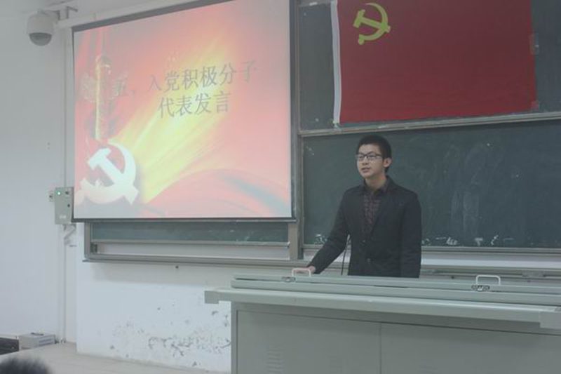 一曲振奋人心的《国际歌》为本次开班典礼拉开了帷幕。崔万春老师对学员们做了动员讲话并提出了几点希望,他指出参加党课培训以及学习党的知识的重要意义;希望学员们树立正确的入党动机;希望学员们珍惜本次学习机会并在以后的学习和生活中认真学习党的理论知识,增强心中的自豪感与民族责任感。接着,总结了学院一年来的学生党建工作,对党员发展情况进行了通报,宣读了参加宣誓的新接收预备党员名单。全体预备党员持立正姿势,面向党旗,举右手握拳,在领誓人王寅老师的带领下庄严宣誓,誓为共产主义奋斗终身。随后,2012级正式党员谢东原作为代表发言,总结两年来自提交申请书到成为正式党员的感悟与收获,并对新一届入党积极分子寄予厚望。2014级入党积极分子洪锦文作为代表发言,表达了本期全体学员严格遵守党课纪律,认真学习党的知识,接受党的教育的决心。黄国标书记在最后对新加入的优秀学员表示热烈的祝贺,并向同学们介绍了学院党委的工作要求及安排,希望能够帮助积极分子各方面得到收获和提高,达到党员的标准与要求。