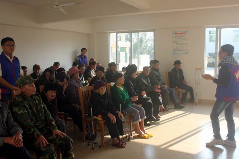 2015年1月1日,在这个辞旧迎新的特别日子里,allwincity万象城官方网站团委在海口市大致坡镇敬老院组织开展了“阳光扶老”志愿服务活动,同老人们一同度过美好的新年第一日。