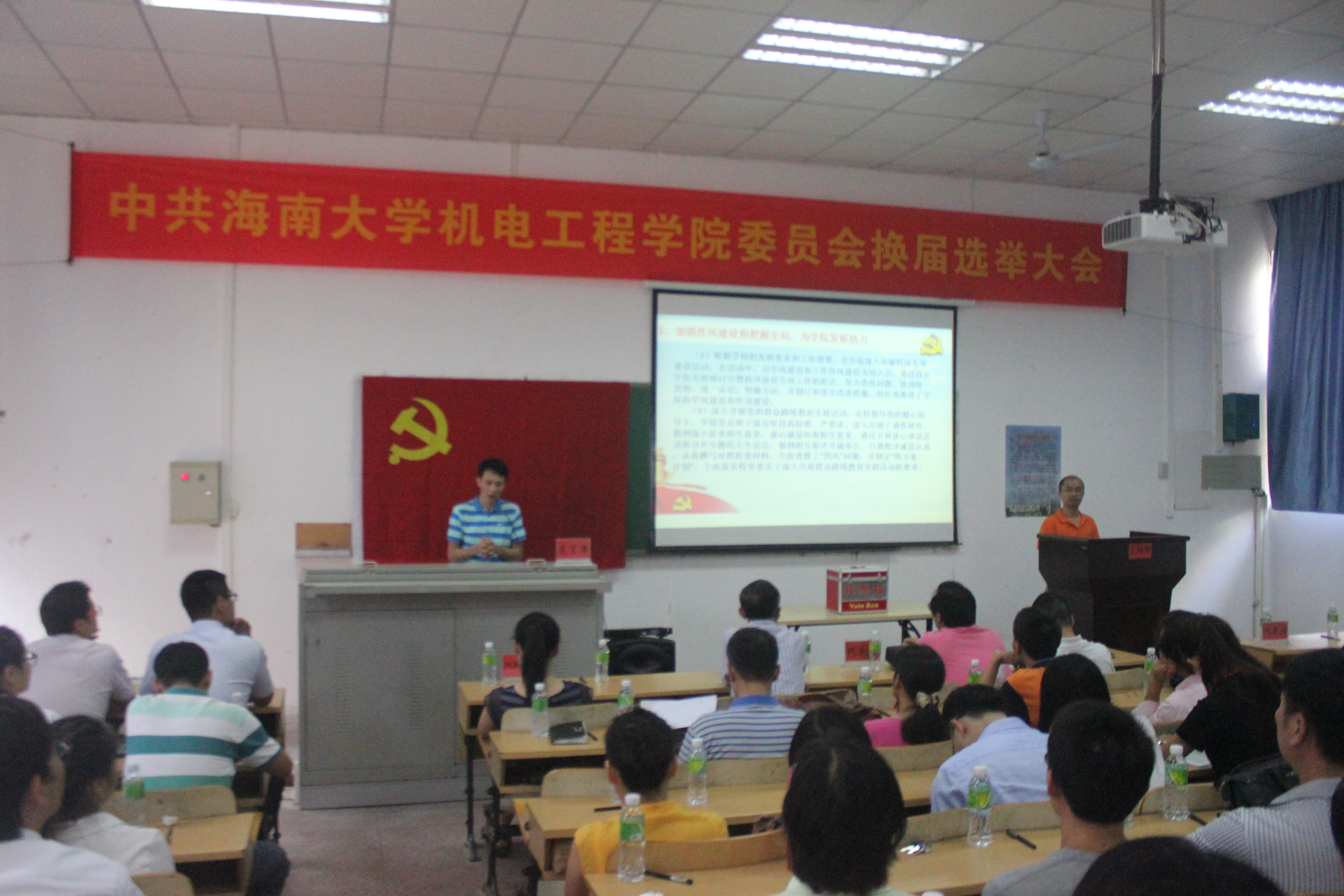会议上,黄国标同志代表上届党委作了题为《创新观念 齐心协力 扎实推进学院各项事业的发展》的工作报告,报告全面总结了学院党委近三年来所取得的成绩,分析了学院发展面临的机遇和挑战,展望了学院党委今后的任务和目标。报告号召,学院全体共产党员要以邓小平理论、“三个代表”重要思想、科学发展观为指导,深入贯彻党的十八大、十八届三中、四中全会和学校党委一届六次全体会议精神,深入开展“三严三实”专题教育,严作风、谋发展、强党建、促和谐,全面提升学院学生的社会竞争力和教师的社会影响力,为建设全国百强高校和实现学院科学发展而努力奋斗。