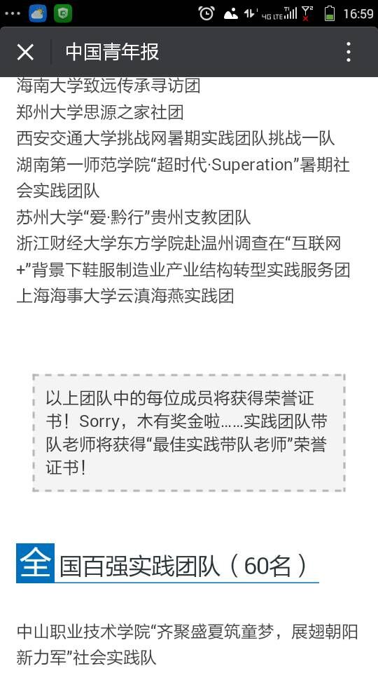 中青报公布优秀实践团队名单