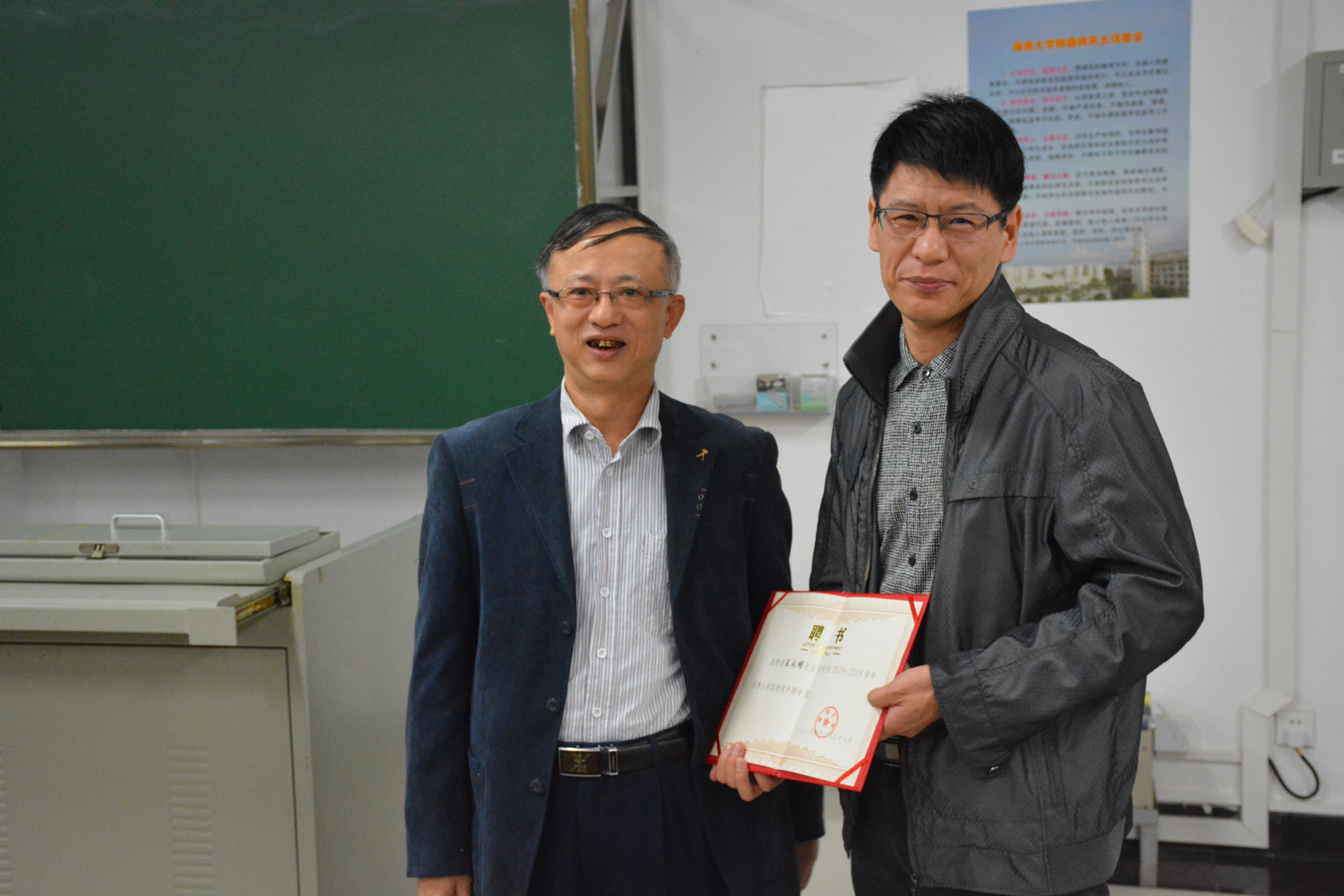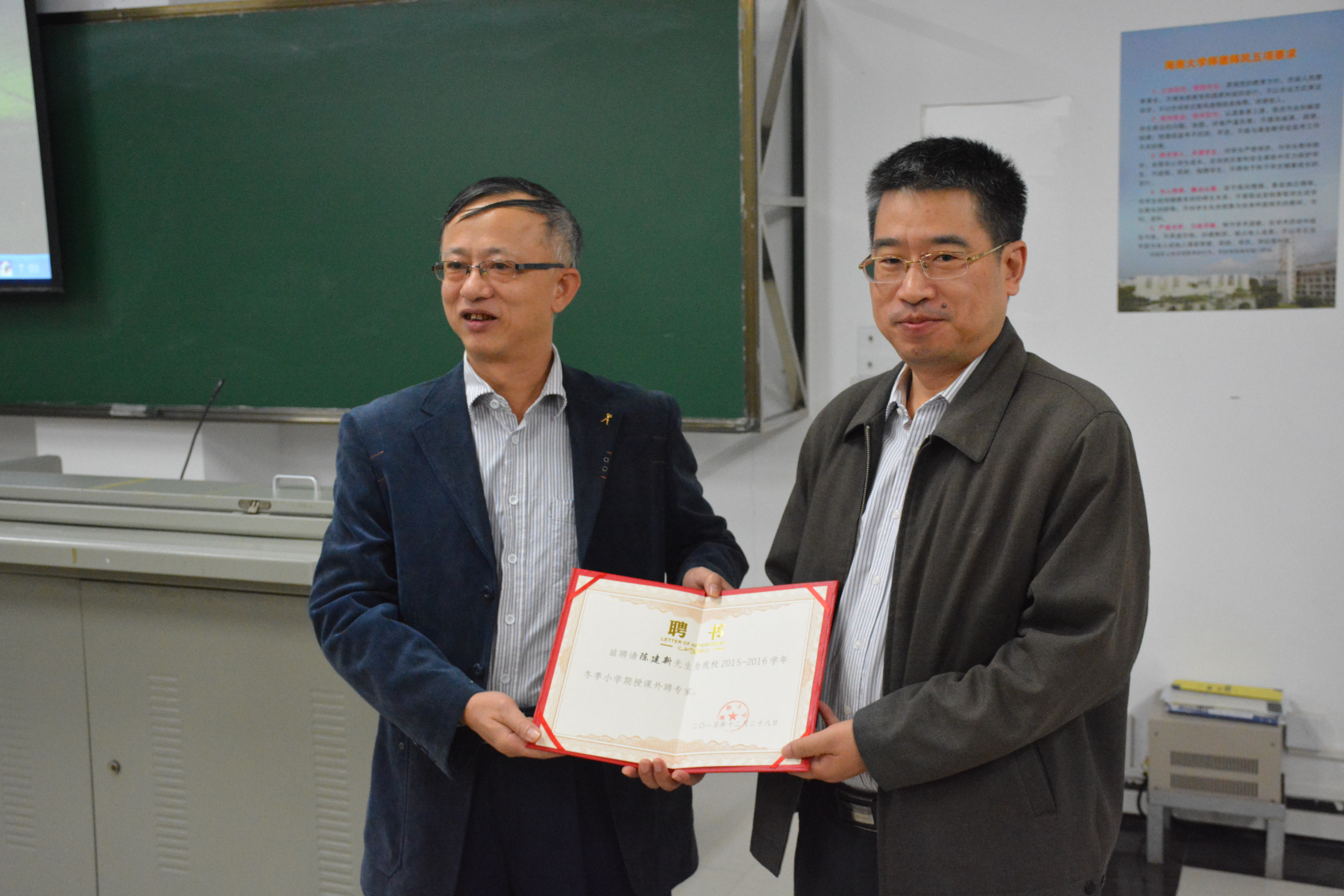 翁绍捷院长为陈建新处长颁发聘书