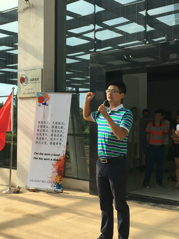 黄国标书记致辞新生。他鼓励新生积极晨读、学好英语,在日积累月的良好习惯和作息中提高自身的英语水平和社会竞争力,树立正确的学习观念。他强调,少年强则中国强,希望海大机电青年学子们铭记校训,传承校风,在学习的康庄大道上勇攀前行。