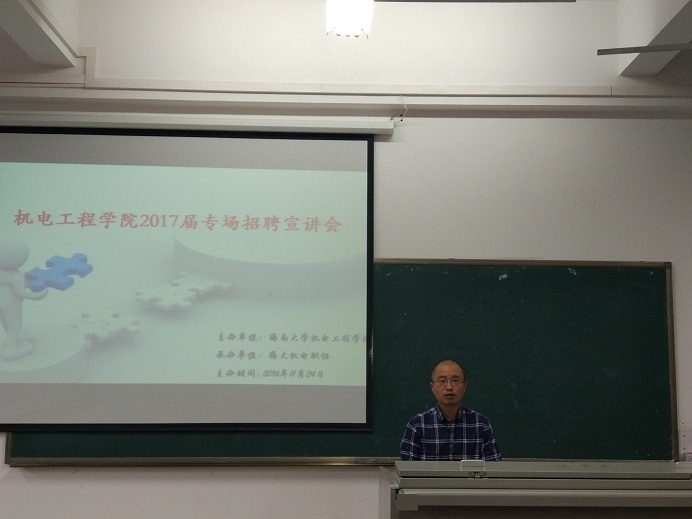 为进一步深化校企合作,促进毕业生高质量实习和就业,2016年11月24日下午,allwincity万象城官方网站2017届毕业生第二场专场招聘宣讲会在4教115成功举办。出席本次招聘宣讲会的有学院党委副书记李宏、学工办主任崔建兵,四家用人单位人事部主要负责人,2017届毕业生及机电职协工作人员,共计100余人。