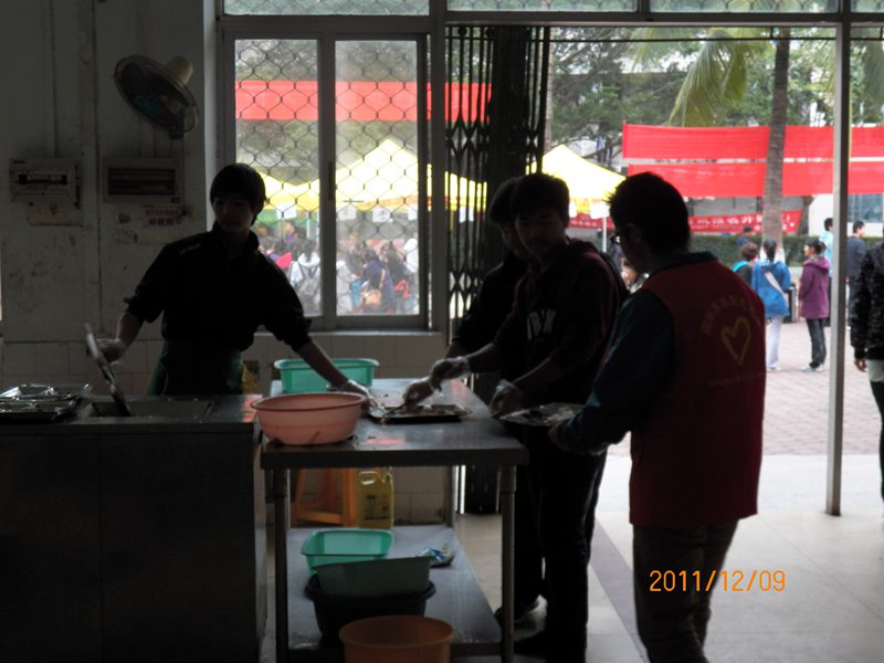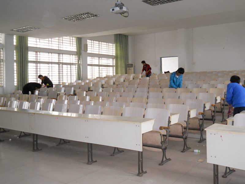 12月9日中午12:00,20余名志愿者前往活动地点, 按照活动安排,志愿服务队分为两个小组,分别展开“文明用餐”与“卫生清洁”两项活动。活动期间,第一组志愿者对在二食堂就餐的同学们不遵守食堂用餐规则,用餐后不自觉回收餐盘的不文明举动进行劝导,并呼吁广大学生在文明之墙留下自己的承诺。于此同时,第二组志愿者对三号教学楼的211和212教室进行了彻底的清扫,包括地面清洁、桌椅清洁等,志愿者们分工合理、配合默契,最终为莘莘学子们留下了干净整洁清新的211和212教室。