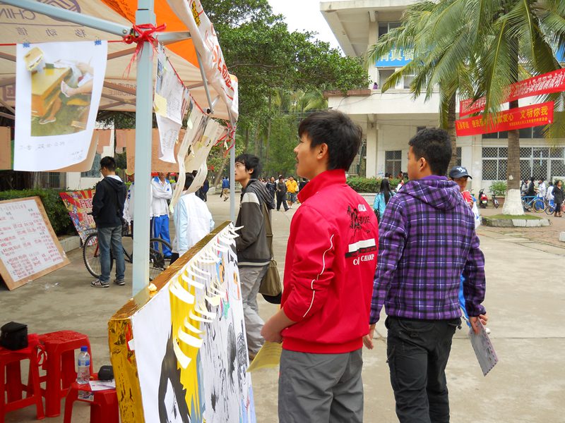 参赛作品展现了垃圾、废物随处乱扔的不文明片段以及同学们自发组织清理校园的精彩瞬间,还有参赛者为鼓励大家与文明牵手自主创作的各类漫画。展出当日,活动得到了广大师生的热情响应,观众积极踊跃地参与投票,同学们对校内文明与不文明的行为进行了激烈的探讨。大家纷纷表示,每个大学生都应该与文明同行,告别不文明现象,做一个有涵养有素质的公民。最终,大赛分别评选出DV、图片、漫画这三类作品的一二三等奖和两个最佳组织奖。