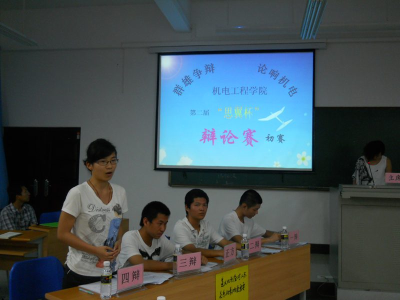 短暂的休息后,第二场比赛在正方机械专业和反方交通专业之间展开,双方紧紧围绕“知难而退和知难而进哪个更明智”陈述自己的观点,双方队员唇枪舌战,不断的提出犀利的问题,在一次有一次的巧辩中抓住对方的漏洞,然后给与严重的反击,最终,正方机械专业以3:2击败交通专业,反方二辩陶良为本场最佳辩手。