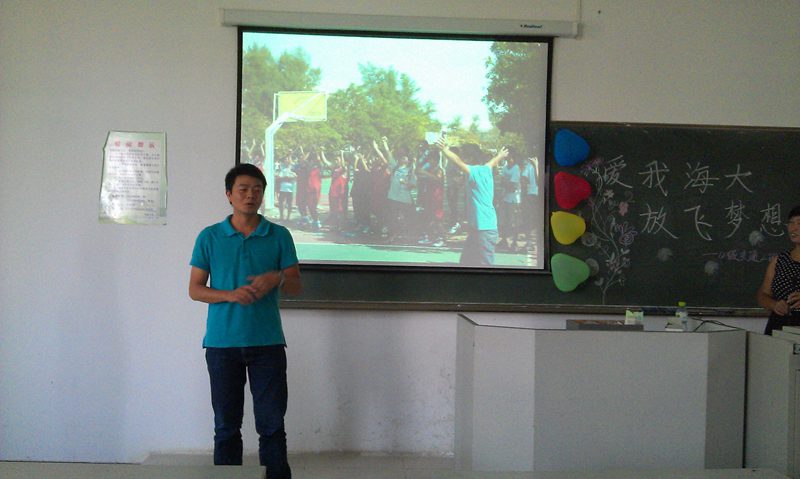 班会由《爱我海大》、《新的精彩》、《和谐班级》《大学梦想》、《为梦想宣誓》五个部分,希望同学们从爱海大、爱老师、爱同学、爱班级,珍惜大学四年美好时光,努力为自己的梦想奋斗。