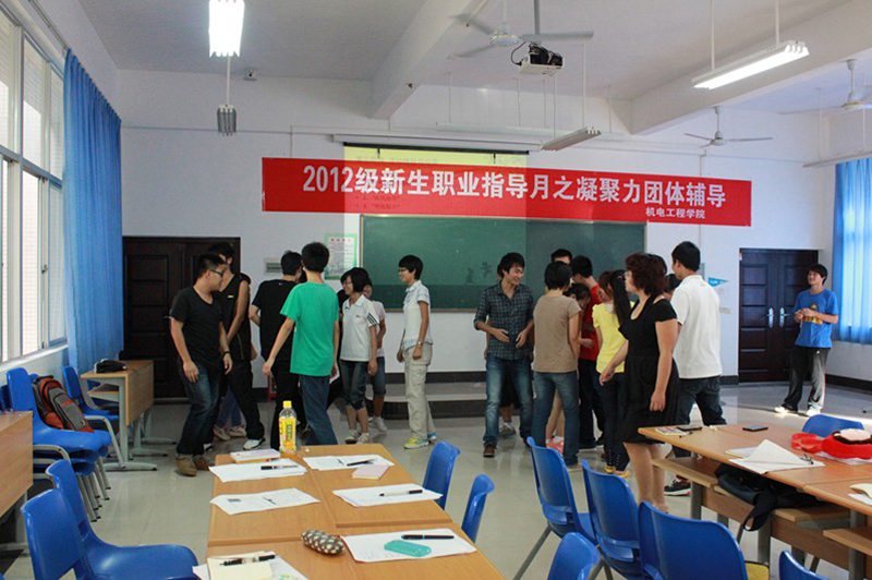 10月30日下午,allwincity万象城官方网站在4-105举行2012级新生职业活动月之凝集力建设团体辅导活动。2012级各班长、团支部书记、学习委员等主要学生干部参加,本次活动由学工办主任陈秀妍老师主讲。