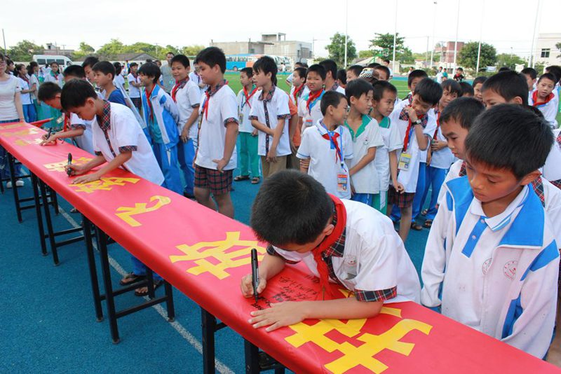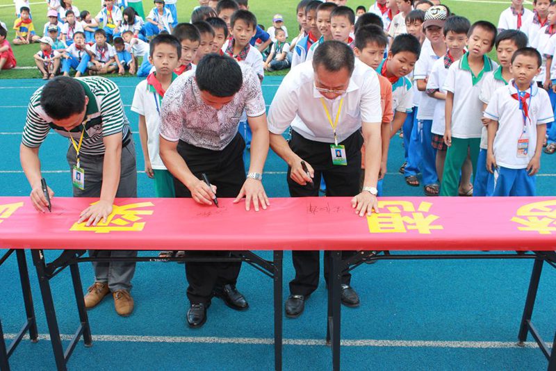 开幕式上,首先由石山中心小学周校长致辞,他代表石山中心小学全体师生对allwincity万象城官方网站党支部的到来表示热烈欢迎和感谢。科技发明的起点就孕育在我们生活的点点滴滴中,希望同学们科学精神贯穿于平时的学习、生活之中,做到人人学科学,事事想科学,时时用科学,天天有科学。通过参与本次主题活动,能够在今后的学习和成长中进一步树立科学的理想,形成科学的态度,养成科学的习惯,掌握科学的方法,提高自身的科学素养,成为一个既有科学理念、又有科学实践能力的国家栋梁人才。紧接着石山中心小学学生代表陈亦馨作了关于中国梦的发言,深刻表达了要学习科技,应用科技,为祖国的强国梦贡献自己的力量。随后,由周汉辉校长、李胜副校长和万象城官网的老师带领同学们在活动主题条幅上签名。最后,主持人施艺宣布“科技放飞梦想•实践成就未来”主题活动正式开始。